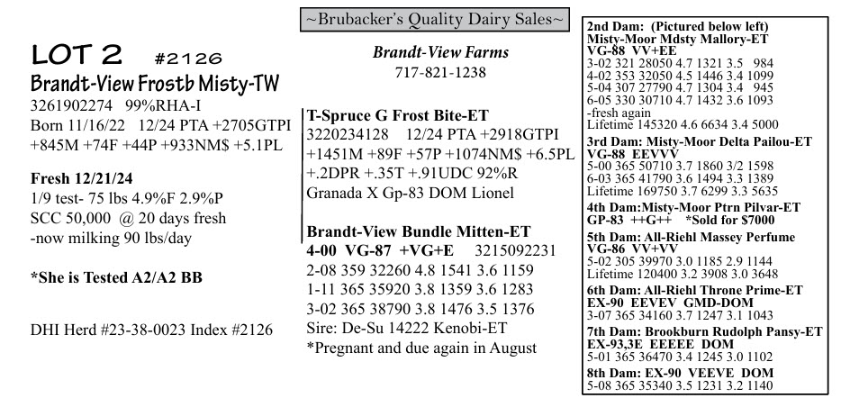 DAIRY COW AND HEIFER SALE - BRUBACKER'S QUALITY DAIRY SALES