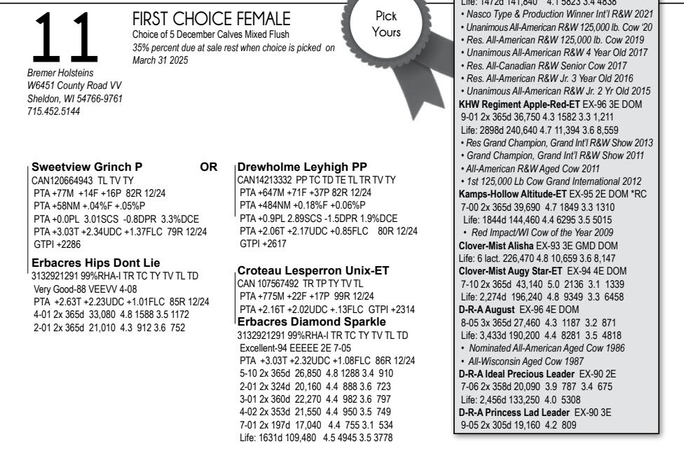 Choice of 5 December Calves Mixed Flush 35% percent due at sale rest when choice is picked on March 31 2025