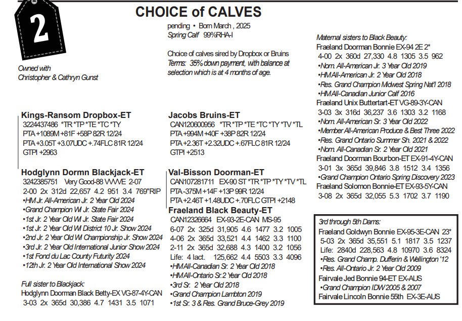 Terms: 35% down payment, with balance at selection which is at 4 months of age.