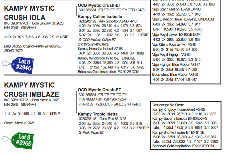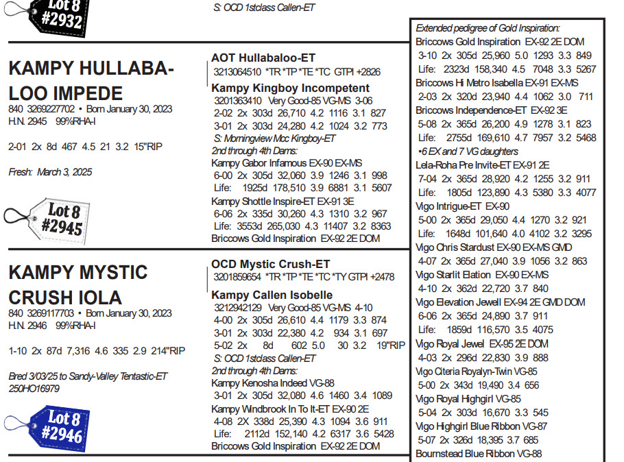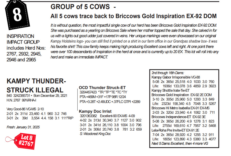 All 5 cows trace back to Briccows Gold Inspiration EX-92 DOM
