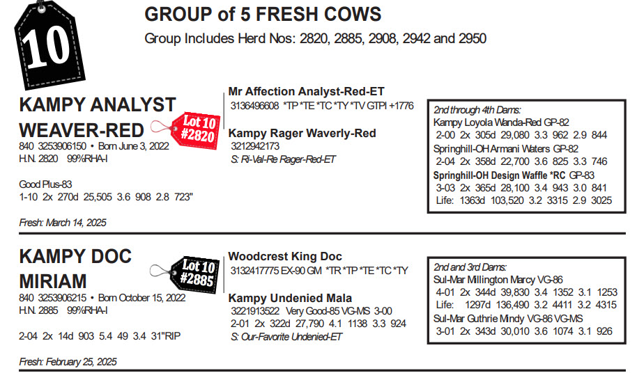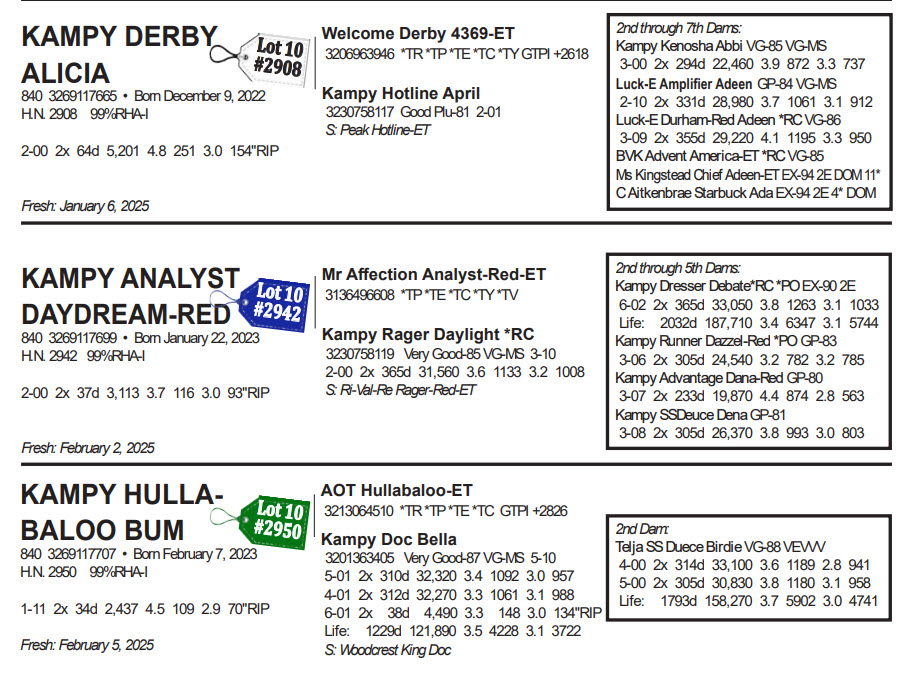 A Decade of Kampy Holsteins Tag Sale