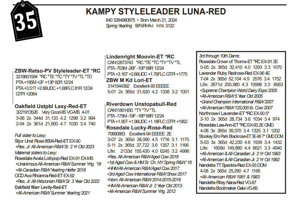 A Decade of Kampy Holsteins Tag Sale