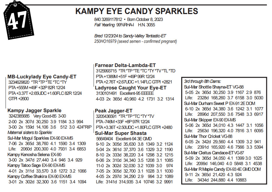 Bred 12/23/24 to Sandy-Valley Tentastic-ET