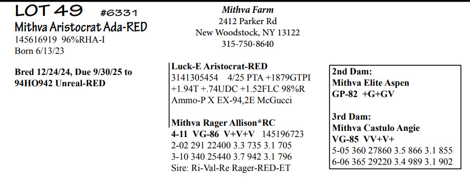 Bred 12/24/24, Due 9/30/25 to