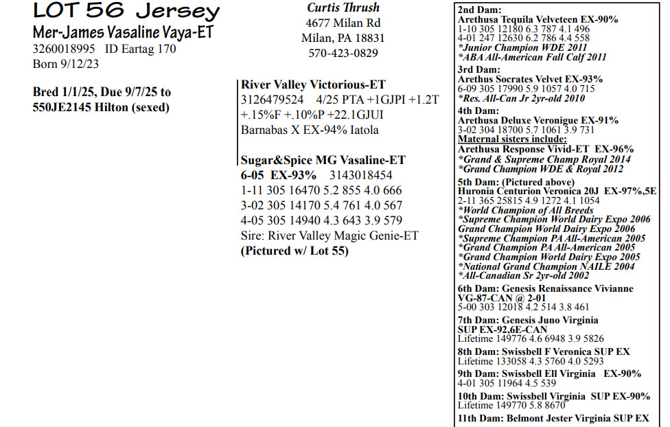 Bred 1/1/25, Due 9/7/25 to