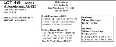 145616919 96%RHA-I Born 6/13/23 Bred 12/24/24, Due 9/30/25 to 94HO942 Unreal-RED