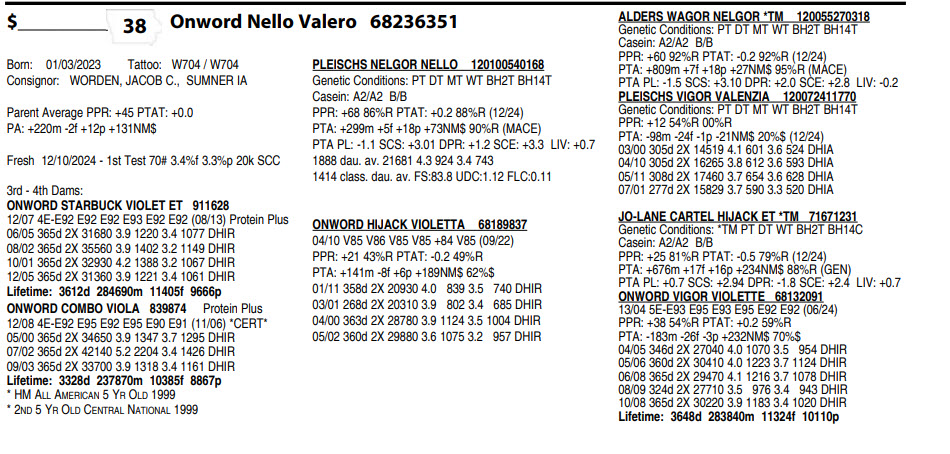 Fresh 12/10/2024 - 1st Test 70# 3.4%f 3.3%p 20k SCC