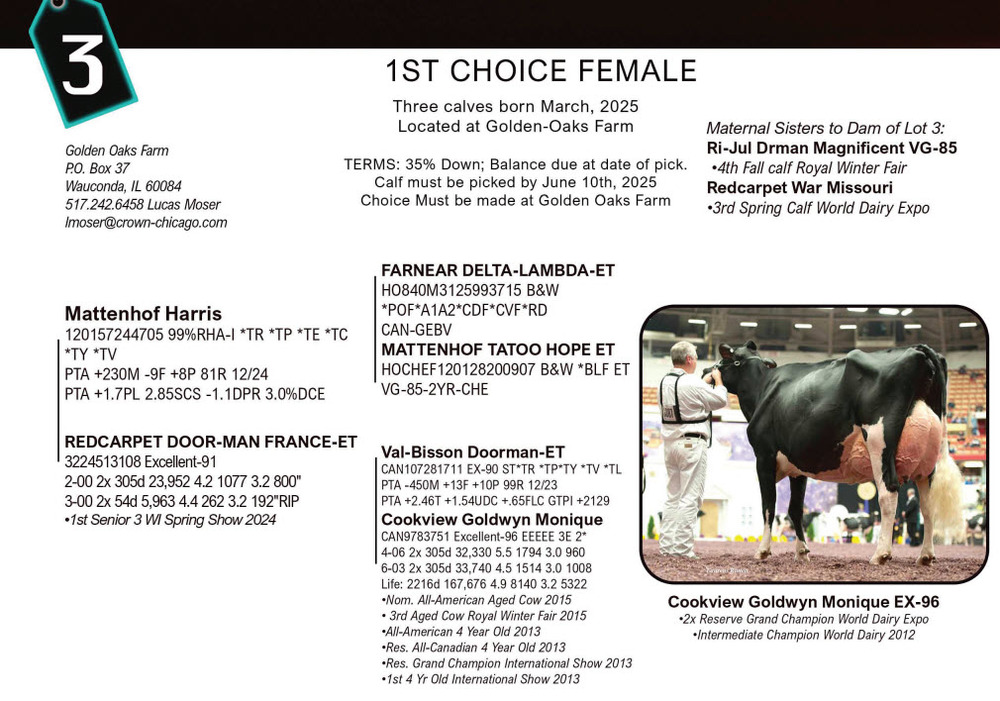 Choice of three March calves sired by Harris x Redcarpet Door-Man France EX-91