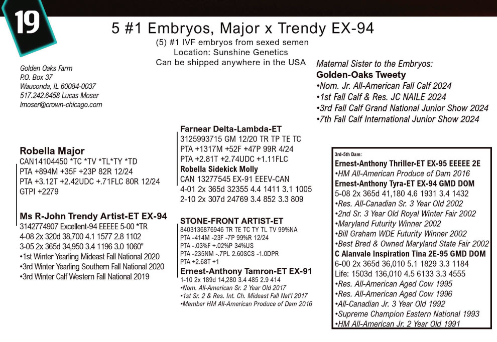 5 #1 Sexed Embryos, Major x Trendy EX-94. Located at Sunshine Genetics
