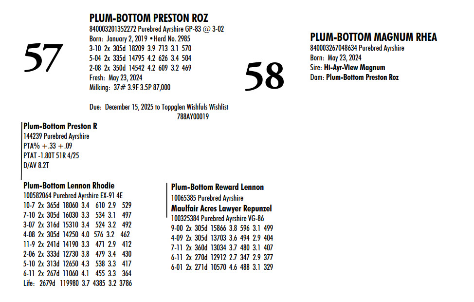 Plum Bottom Ayrshires Complete Herd Dispersal