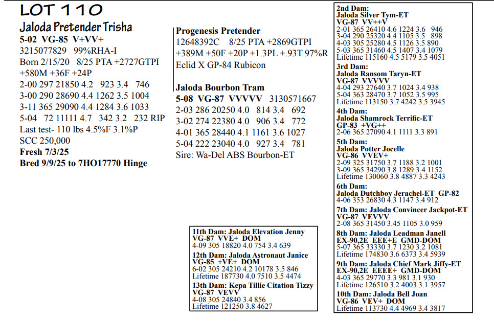 JALODA FARMS REGISTERED HOLSTEINS DISPERSAL