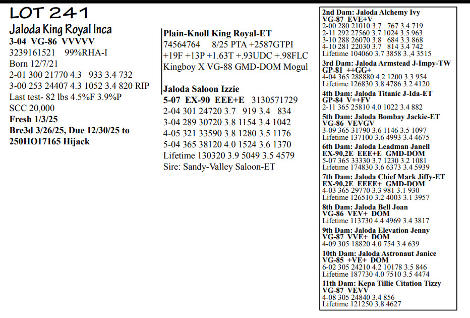 JALODA FARMS REGISTERED HOLSTEINS DISPERSAL