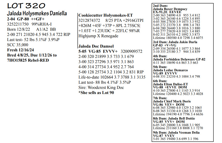 JALODA FARMS REGISTERED HOLSTEINS DISPERSAL
