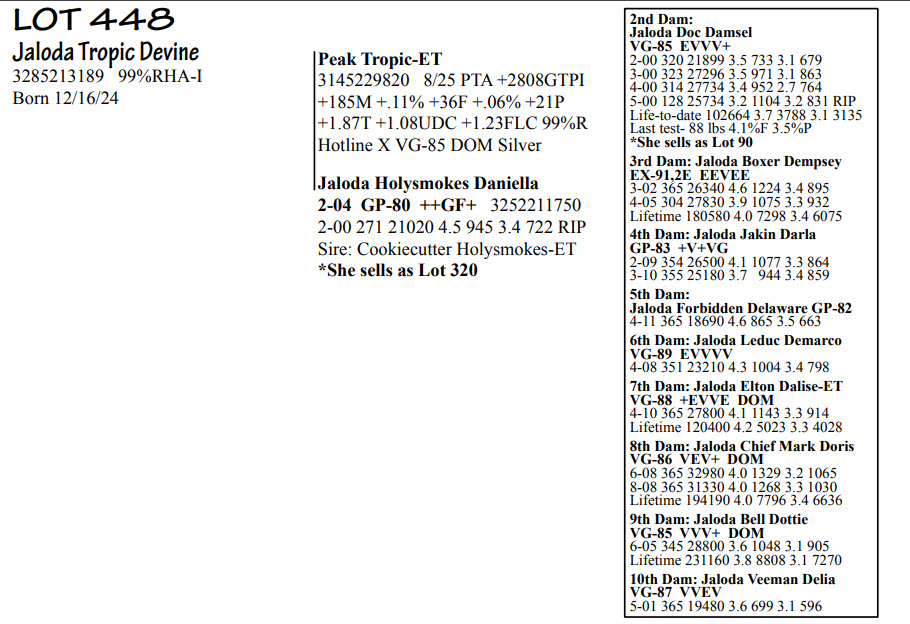 JALODA FARMS REGISTERED HOLSTEINS DISPERSAL