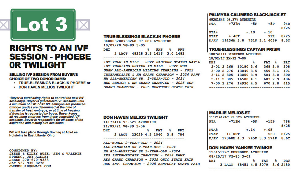 DON HAVEN MELIOS TWILIGHT IVF will take place through Boviteq at Ack-Lee