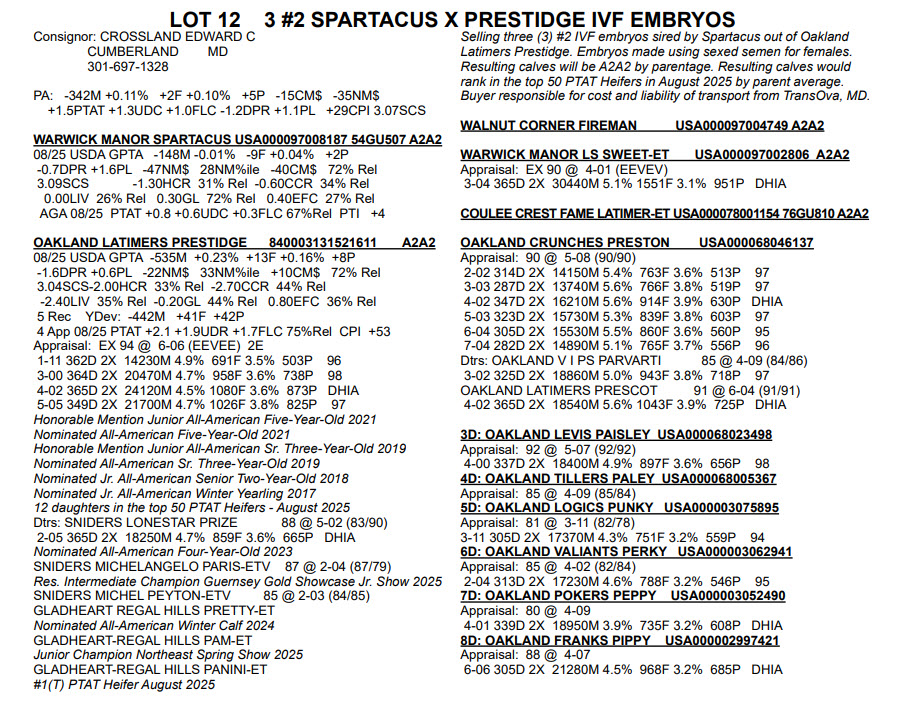 Latimers Prestidge. Embryos made using sexed semen for females.