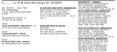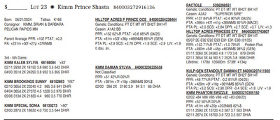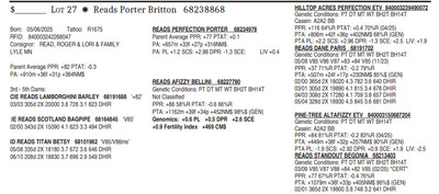 Born: 06/21/2024 Tattoo: K166 Consignor: KIMM, BRIAN & BARBARA PELICAN RAPIDS MN Parent Average PPR: +102 PTAT: +0.3 PA: +231m +30f +27p +376NM$