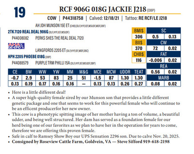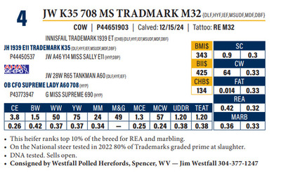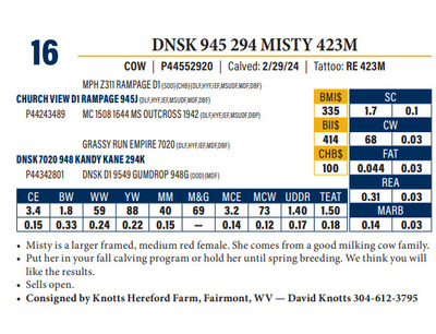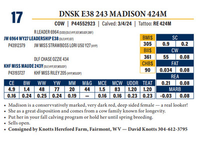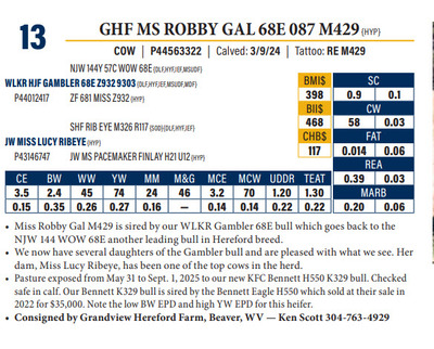 Mountain State Hereford Spectacular 160 Jackson Mill Road, Weston WV, 26452 Selling All Breeds Contact Agent: Katie Shultz 717-543-7883 Catalog | Terms of Auction Download CATALOG ISSUU CATALOG LINK Catalog | Terms Download CATALOG ISSUU CATALOG LINK All Items (49) No Category (49) Categories All Items (49) No Category (49) Search Item #: Keyword: Search Catalog Item #: Keyword: 20 items per page 50 items per page 100 items per page Go to page #: 1 , 2 , 3 #1 – JW 56G K25 GOLD RUSH M34 JW 56G K25 GOLD RUSH M34 Location: 160 Jackson Mill Road, Weston WV, 26452 Contact Agent: Katie Shultz 717-543-7883 More Info / Bid Now Track this Item Sold High Bid: $3,300.00 – #145 #1 – JW 56G K25 GOLD RUSH M34 Sold High Bid: $3,300 More Details More Info / Bid Track Item JW 56G K25 GOLD RUSH M34 Location: 160 Jackson Mill Road, Weston WV, 26452 Contact Agent: Katie Shultz 717-543-7883 #2 – JW K23-G31 MS TRADEMARK M33 JW K23-G31 MS TRADEMARK M33 Location: 160 Jackson Mill Road, Weston WV, 26452 Contact Agent: Katie Shultz 717-543-7883 More Info / Bid Now Track this Item Sold High Bid: $2,400.00 – #127 #2 – JW K23-G31 MS TRADEMARK M33 Sold High Bid: $2,400 More Details More Info / Bid Track Item JW K23-G31 MS TRADEMARK M33 Location: 160 Jackson Mill Road, Weston WV, 26452 Contact Agent: Katie Shultz 717-543-7883 #3 – JW K35 H61 MS TRADMARK M28 JW K35 H61 MS TRADMARK M28 Location: 160 Jackson Mill Road, Weston WV, 26452 Contact Agent: Katie Shultz 717-543-7883 More Info / Bid Now Track this Item Sold High Bid: $2,550.00 – #116 #3 – JW K35 H61 MS TRADMARK M28 Sold High Bid: $2,550 More Details More Info / Bid Track Item JW K35 H61 MS TRADMARK M28 Location: 160 Jackson Mill Road, Weston WV, 26452 Contact Agent: Katie Shultz 717-543-7883 #4 – JW K35 708 MS TRADMARK M32 JW K35 708 MS TRADMARK M32 Location: 160 Jackson Mill Road, Weston WV, 26452 Contact Agent: Katie Shultz 717-543-7883 More Info / Bid Now Track this Item Sold High Bid: $2,400.00 – #127 #4 – JW K35 708 MS TRADMARK M32 Sold High Bid: $2,400 More Details More Info / Bid Track Item JW K35 708 MS TRADMARK M32 Location: 160 Jackson Mill Road, Weston WV, 26452 Contact Agent: Katie Shultz 717-543-7883 #5 – CB LL MISS MOLLY 202 599 CB LL MISS MOLLY 202 599 Location: 160 Jackson Mill Road, Weston WV, 26452 Contact Agent: Katie Shultz 717-543-7883 More Info / Bid Now Track this Item Sold High Bid: $2,350.00 – #1 #5 – CB LL MISS MOLLY 202 599 Sold High Bid: $2,350 More Details More Info / Bid Track Item CB LL MISS MOLLY 202 599 Location: 160 Jackson Mill Road, Weston WV, 26452 Contact Agent: Katie Shultz 717-543-7883 #5A – CB LL MR NIXON 52J 672 CB LL MR NIXON 52J 672 Location: 160 Jackson Mill Road, Weston WV, 26452 Contact Agent: Katie Shultz 717-543-7883 More Info / Bid Now Track this Item Sold High Bid: $3,300.00 – #111 #5A – CB LL MR NIXON 52J 672 Sold High Bid: $3,300 More Details More Info / Bid Track Item CB LL MR NIXON 52J 672 Location: 160 Jackson Mill Road, Weston WV, 26452 Contact Agent: Katie Shultz 717-543-7883 #6 – CB LL MISS MYLEE 662 CB LL MISS MYLEE 662 Location: 160 Jackson Mill Road, Weston WV, 26452 Contact Agent: Katie Shultz 717-543-7883 More Info / Bid Now Track this Item Sold High Bid: $2,900.00 – #131 #6 – CB LL MISS MYLEE 662 Sold High Bid: $2,900 More Details More Info / Bid Track Item CB LL MISS MYLEE 662 Location: 160 Jackson Mill Road, Weston WV, 26452 Contact Agent: Katie Shultz 717-543-7883 #7 – CB LL MISS MOLLEE 663 CB LL MISS MOLLEE 663 Location: 160 Jackson Mill Road, Weston WV, 26452 Contact Agent: Katie Shultz 717-543-7883 More Info / Bid Now Track this Item Sold High Bid: $3,200.00 – #131 #7 – CB LL MISS MOLLEE 663 Sold High Bid: $3,200 More Details More Info / Bid Track Item CB LL MISS MOLLEE 663 Location: 160 Jackson Mill Road, Weston WV, 26452 Contact Agent: Katie Shultz 717-543-7883 #8 – GRASSY RUN DEW 316 GRASSY RUN DEW 316 Location: 160 Jackson Mill Road, Weston WV, 26452 Contact Agent: Katie Shultz 717-543-7883 More Info / Bid Now Track this Item No Bids Starting at $1,000.00 Login to Bid #8 – GRASSY RUN DEW 316 Starting at $1,000.00 Login to Bid More Details More Info / Bid Track Item GRASSY RUN DEW 316 Location: 160 Jackson Mill Road, Weston WV, 26452 Contact Agent: Katie Shultz 717-543-7883 #9 – GRASSY RUN DEW 504 GRASSY RUN DEW 504 Location: 160 Jackson Mill Road, Weston WV, 26452 Contact Agent: Katie Shultz 717-543-7883 More Info / Bid Now Track this Item No Bids Starting at $1,000.00 Login to Bid #9 – GRASSY RUN DEW 504 Starting at $1,000.00 Login to Bid More Details More Info / Bid Track Item GRASSY RUN DEW 504 Location: 160 Jackson Mill Road, Weston WV, 26452 Contact Agent: Katie Shultz 717-543-7883 #10 – FSL MISS HISTORIC 81E 7C 33K FSL MISS HISTORIC 81E 7C 33K Location: 160 Jackson Mill Road, Weston WV, 26452 Contact Agent: Katie Shultz 717-543-7883 More Info / Bid Now Track this Item Sold High Bid: $3,800.00 – #126 #10 – FSL MISS HISTORIC 81E 7C 33K Sold High Bid: $3,800 More Details More Info / Bid Track Item FSL MISS HISTORIC 81E 7C 33K Location: 160 Jackson Mill Road, Weston WV, 26452 Contact Agent: Katie Shultz 717-543-7883 #11 – BOYD RACHEL 3160 BOYD RACHEL 3160 Location: 160 Jackson Mill Road, Weston WV, 26452 Contact Agent: Katie Shultz 717-543-7883 More Info / Bid Now Track this Item Sold High Bid: $3,450.00 – #114 #11 – BOYD RACHEL 3160 Sold High Bid: $3,450 More Details More Info / Bid Track Item BOYD RACHEL 3160 Location: 160 Jackson Mill Road, Weston WV, 26452 Contact Agent: Katie Shultz 717-543-7883 #12 – GHF MS SONOMA 33Z 920 M423 GHF MS SONOMA 33Z 920 M423 Location: 160 Jackson Mill Road, Weston WV, 26452 Contact Agent: Katie Shultz 717-543-7883 More Info / Bid Now Track this Item Sold High Bid: $3,500.00 – #109 #12 – GHF MS SONOMA 33Z 920 M423 Sold High Bid: $3,500 More Details More Info / Bid Track Item GHF MS SONOMA 33Z 920 M423 Location: 160 Jackson Mill Road, Weston WV, 26452 Contact Agent: Katie Shultz 71