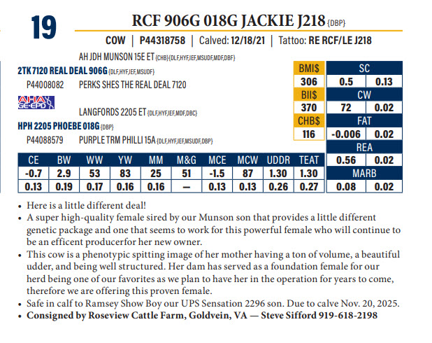 RCF 906G 018G JACKIE J218