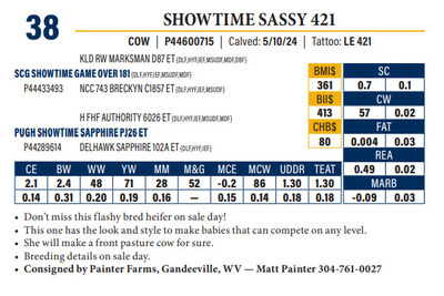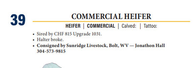 Mountain State Hereford Spectacular 160 Jackson Mill Road, Weston WV, 26452 Selling All Breeds Contact Agent: Katie Shultz 717-543-7883 Catalog | Terms of Auction Download CATALOG ISSUU CATALOG LINK Catalog | Terms Download CATALOG ISSUU CATALOG LINK All Items (49) No Category (49) Categories All Items (49) No Category (49) Search Item #: Keyword: Search Catalog Item #: Keyword: 20 items per page 50 items per page 100 items per page Go to page #: 1 , 2 , 3 #37 – FRBR EMF REBA 502 FRBR EMF REBA 502 Location: 160 Jackson Mill Road, Weston WV, 26452 Contact Agent: Katie Shultz 717-543-7883 More Info / Bid Now Track this Item Sold High Bid: $2,600.00 – #108 #37 – FRBR EMF REBA 502 Sold High Bid: $2,600 More Details More Info / Bid Track Item FRBR EMF REBA 502 Location: 160 Jackson Mill Road, Weston WV, 26452 Contact Agent: Katie Shultz 717-543-7883 #38 – SHOWTIME SASSY 421 SHOWTIME SASSY 421 Location: 160 Jackson Mill Road, Weston WV, 26452 Contact Agent: Katie Shultz 717-543-7883 More Info / Bid Now Track this Item Sold High Bid: $3,000.00 – #1 #38 – SHOWTIME SASSY 421 Sold High Bid: $3,000 More Details More Info / Bid Track Item SHOWTIME SASSY 421 Location: 160 Jackson Mill Road, Weston WV, 26452 Contact Agent: Katie Shultz 717-543-7883 #39 – COMMERCIAL HEIFER COMMERCIAL HEIFER Location: 160 Jackson Mill Road, Weston WV, 26452 Contact Agent: Katie Shultz 717-543-7883 More Info / Bid Now Track this Item Sold High Bid: $3,000.00 – #111 #39 – COMMERCIAL HEIFER Sold High Bid: $3,000 More Details More Info / Bid Track Item COMMERCIAL HEIFER Location: 160 Jackson Mill Road, Weston WV, 26452 Contact Agent: Katie Shultz 717-543-7883 #40 – COMMERCIAL HEIFER COMMERCIAL HEIFER Location: 160 Jackson Mill Road, Weston WV, 26452 Contact Agent: Katie Shultz 717-543-7883 More Info / Bid Now Track this Item Sold High Bid: $2,900.00 – #130 #40 – COMMERCIAL HEIFER Sold High Bid: $2,900 More Details More Info / Bid Track Item COMMERCIAL HEIFER Location: 160 Jackson Mill Road, Weston WV, 26452 Contact Agent: Katie Shultz 717-543-7883 #41 – ADDED LOT PLEASE LISTEN Location: 160 Jackson Mill Road, Weston WV, 26452 Contact Agent: Katie Shultz 717-543-7883 More Info / Bid Now Track this Item Sold High Bid: $1,900.00 – #123 #41 – ADDED LOT Sold High Bid: $1,900 More Details More Info / Bid Track Item PLEASE LISTEN Location: 160 Jackson Mill Road, Weston WV, 26452 Contact Agent: Katie Shultz 717-543-7883 #42 – ADDED LOT PLEASE LISTEN Location: 160 Jackson Mill Road, Weston WV, 26452 Contact Agent: Katie Shultz 717-543-7883 More Info / Bid Now Track this Item Sold High Bid: $300.00 – #110 #42 – ADDED LOT Sold High Bid: $300 More Details More Info / Bid Track Item PLEASE LISTEN Location: 160 Jackson Mill Road, Weston WV, 26452 Contact Agent: Katie Shultz 717-543-7883 #43 – ADDED LOT PLEASE LISTEN Location: 160 Jackson Mill Road, Weston WV, 26452 Contact Agent: Katie Shultz 717-543-7883 More Info / Bid Now Track this Item No Bids Starting at $1,000.00 Login to Bid #43 – ADDED LOT Starting at $1,000.00 Login to Bid More Details More Info / Bid Track Item PLEASE LISTEN Location: 160 Jackson Mill Road, Weston WV, 26452 Contact Agent: Katie Shultz 717-543-7883 #44 – ADDED LOT PLEASE LISTEN Location: 160 Jackson Mill Road, Weston WV, 26452 Contact Agent: Katie Shultz 717-543-7883 More Info / Bid Now Track this Item No Bids Starting at $1,000.00 Login to Bid #44 – ADDED LOT Starting at $1,000.00 Login to Bid More Details More Info / Bid Track Item PLEASE LISTEN Location: 160 Jackson Mill Road, Weston WV, 26452 Contact Agent: Katie Shultz 717-543-7883 #45 – ADDED LOT PLEASE LISTEN Location: 160 Jackson Mill Road, Weston WV, 26452 Contact Agent: Katie Shultz 717-543-7883 More Info / Bid Now Track this Item No Bids Starting at $1,000.00 Login to Bid #45 – ADDED LOT Starting at $1,000.00 Login to Bid More Details More Info / Bid Track Item PLEASE LISTEN Location: 160 Jackson Mill Road, Weston WV, 26452 Contact Agent: Katie Shultz 717-543-7883 Previous 20 Items Go to page #: 1 , 2 , 3 Auction is Closing Now! This page does not auto refresh. Please use the live auction board to see the bids happen live! Do not show this popup again for this auction Proceed to Live Board Stay on Page