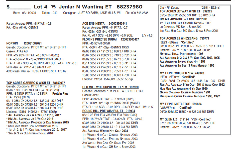 Born: 03/14/2025 Tattoo: 249 Parent Average PPR: +8 PTAT: +0.8