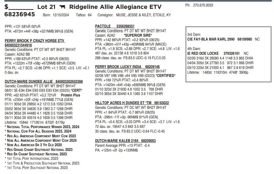 68236945 Born: 12/15/2024 Tattoo: 64 Consignor: MUSE, JESSE & KILEY, ETOILE, KY PPR: +131 58%R 00%R