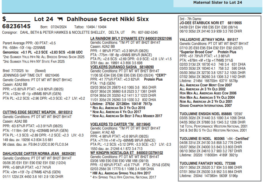 68236145 Born: 07/24/2024 Tattoo: 10494 / 10494 Parent Average PPR: -30 PTAT: +0.5