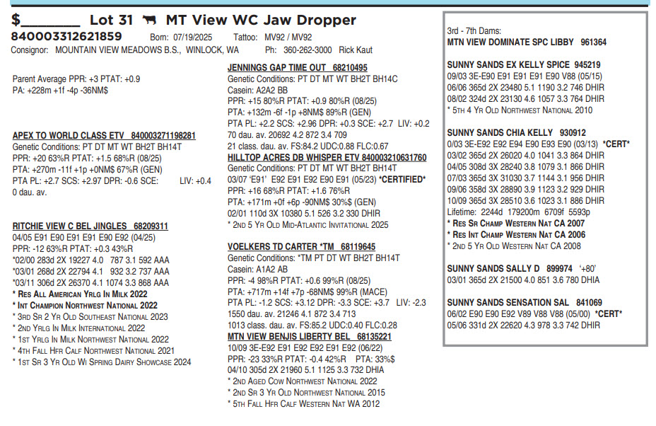 840003312621859 Born: 07/19/2025 Tattoo: MV92 / MV92 Parent Average PPR: +3 PTAT: +0.9