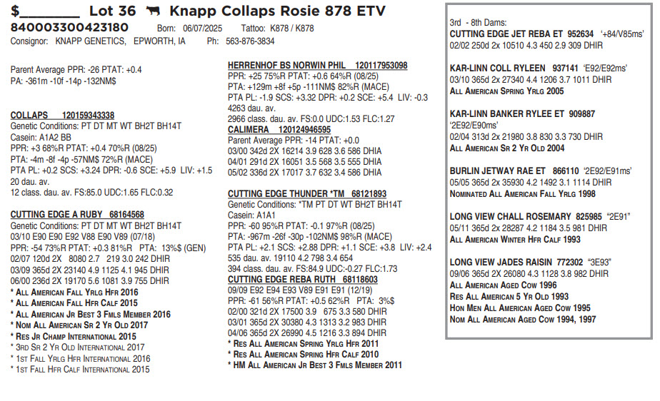 840003300423180 Born: 06/07/2025 Tattoo: K878 / K878 Parent Average PPR: -26 PTAT: +0.4
