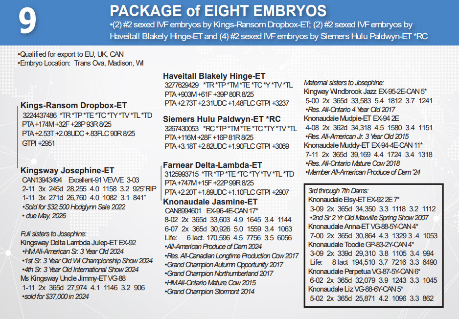 (2) #2 sexed IVF embryos by Kings-Ransom Dropbox-ET; (2) #2 sexed IVF embryos by Haveitall Blakely Hinge-ET and (4) #2 sexed IVF embryos by Siemers Hulu Paldwyn-ET *RC