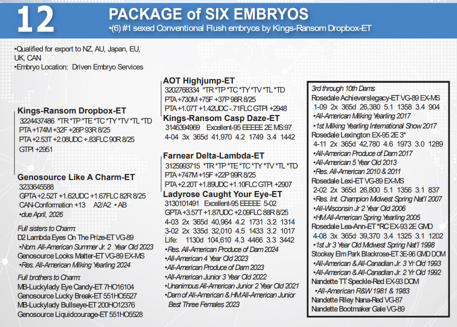 (6) #1 sexed Conventional Flush embryos by Kings-Ransom Dropbox-ET