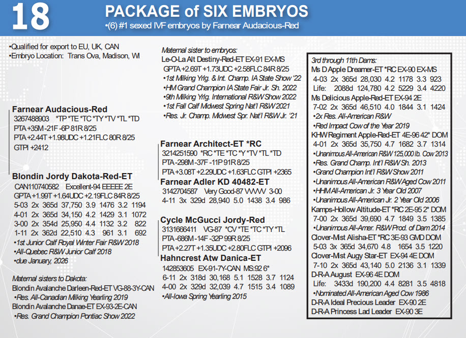 (6) #1 sexed IVF embryos by Farnear Audacious-Red