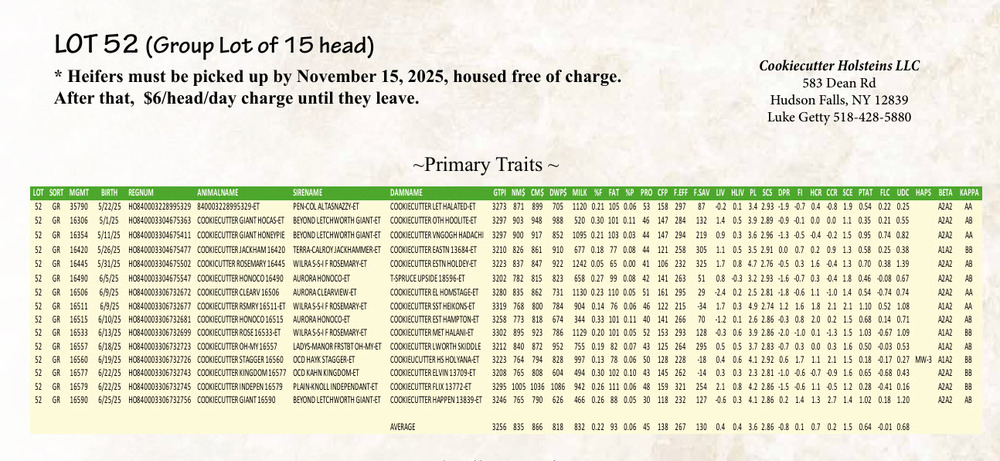 Heifers must be picked up by November 15, 2025, housed free of charge.
