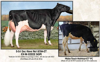 Bacon Hill & Friends Sale III 311 King Rd, Schuylerville NY, 12871 No Minimums! No Reserves! Contact Agent: Aaron Ray 336-363-4639 Catalog | Terms of Auction Download CATALOG Download UPDATES Download LOT 3R ISSUU CATALOG LINK Catalog | Terms Download CATALOG Download UPDATES Download LOT 3R ISSUU CATALOG LINK All Items (56) Embryos (1) No Category (55) Categories All Items (56) Embryos (1) No Category (55) Search Item #: Keyword: Search Catalog Item #: Keyword: 20 items per page 50 items per page 100 items per page Go to page #: 1 , 2 , 3 #41A – FARGO X DASHA EMBRYOS Selling 4-#1 IVF female embryos sired by Fargo Embryo PA = +3342G +765NM$ +783M +92F +44P +1.65T +1.48UDC NOTE: Lot 41A embryos MUST sell to a current Faststart member herd. Location: 311 King Rd, Schuylerville NY, 12871 Contact Agent: Aaron Ray 336-363-4639 More Info / Bid Now Track this Item Sold High Bid: $950.00 – #1002 Auction Type: Quantity x Price Quantity: 4 #41A – FARGO X DASHA EMBRYOS Quantity x PriceQuantity: 4 Sold High Bid: $950 More Details More Info / Bid Track Item Selling 4-#1 IVF female embryos sired by Fargo Embryo PA = +3342G +765NM$ +783M +92F +44P +1.65T +1.48UDC NOTE: Lot 41A embryos MUST sell to a current Faststart member herd. Location: 311 King Rd, Schuylerville NY, 12871 Contact Agent: Aaron Ray 336-363-4639 #41B – HINGE X DASHA EMBRYOS *Selling 3-#1 & 1-#2 IVF female embryos sired by Hinge Embryo PA = +3232G +2.32T +74F Location: 311 King Rd, Schuylerville NY, 12871 Contact Agent: Aaron Ray 336-363-4639 More Info / Bid Now Track this Item Sold High Bid: $875.00 – #1002 Auction Type: Quantity x Price Quantity: 4 #41B – HINGE X DASHA EMBRYOS Quantity x PriceQuantity: 4 Sold High Bid: $875 More Details More Info / Bid Track Item *Selling 3-#1 & 1-#2 IVF female embryos sired by Hinge Embryo PA = +3232G +2.32T +74F Location: 311 King Rd, Schuylerville NY, 12871 Contact Agent: Aaron Ray 336-363-4639 #42 – Dam of IVF Session: Clear-Echo Holy-P 6727-ET*PC Clear-Echo Holy-P 6727-ET*PC 3296172257 99%RHA-I Born 5/6/25 A1/A2 AB MW-0 8/25 PTA +3353GTPI +795NM$ +827CM$ +142CFP +254FE +664M +.27% +101F +.07% +41P +3.7PL 2.84SCS +.0CCR -.3FI +1.75T +1.45UDC +1.27FLC 2.0%SCE #6 NM$ PC Holy-P daughter! Location: 311 King Rd, Schuylerville NY, 12871 Contact Agent: Aaron Ray 336-363-4639 More Info / Bid Now Track this Item Sold High Bid: $13,000.00 – #1040 #42 – Dam of IVF Session: Clear-Echo Holy-P 6727-ET*PC Sold High Bid: $13,000 More Details More Info / Bid Track Item Clear-Echo Holy-P 6727-ET*PC 3296172257 99%RHA-I Born 5/6/25 A1/A2 AB MW-0 8/25 PTA +3353GTPI +795NM$ +827CM$ +142CFP +254FE +664M +.27% +101F +.07% +41P +3.7PL 2.84SCS +.0CCR -.3FI +1.75T +1.45UDC +1.27FLC 2.0%SCE #6 NM$ PC Holy-P daughter! Location: 311 King Rd, Schuylerville NY, 12871 Contact Agent: Aaron Ray 336-363-4639 #43 – Donor Dam of Lot 43 IVF session Midas-Touch Holyhour-ET*PC Midas-Touch Holyhour-ET*PC 3286391922 99%RHA-I Born 1/8/25 A2/A2 AA MW-0 8/25 PTA +3141GTPI +393NM$ +417CM$ +75CFP +118FE +498M +.09% +45F +.05% +30P +2.0PL 2.88SCS +.2CCR +.3FI +3.00T +2.20UDC +1.66FLC 1.6%SCE +9 conformation *Averaged 24.3 ooyctes on 4 OPU’s #3 GTPI PC heifer over +3.00PTAT! Location: 311 King Rd, Schuylerville NY, 12871 Contact Agent: Aaron Ray 336-363-4639 More Info / Bid Now Track this Item Sold High Bid: $8,000.00 – #1065 #43 – Donor Dam of Lot 43 IVF session Midas-Touch Holyhour-ET*PC Sold High Bid: $8,000 More Details More Info / Bid Track Item Midas-Touch Holyhour-ET*PC 3286391922 99%RHA-I Born 1/8/25 A2/A2 AA MW-0 8/25 PTA +3141GTPI +393NM$ +417CM$ +75CFP +118FE +498M +.09% +45F +.05% +30P +2.0PL 2.88SCS +.2CCR +.3FI +3.00T +2.20UDC +1.66FLC 1.6%SCE +9 conformation *Averaged 24.3 ooyctes on 4 OPU’s #3 GTPI PC heifer over +3.00PTAT! Location: 311 King Rd, Schuylerville NY, 12871 Contact Agent: Aaron Ray 336-363-4639 #43A – ALPINE P X HOLYHOUR EMBRYOS Selling 5-#1 IVF female embryos sired by Alpine-P *UK/Canada export eligible. Embryo PA = +3255G +601NM$ +638M +79F +33P +2.03T +1.55UDC Location: 311 King Rd, Schuylerville NY, 12871 Contact Agent: Aaron Ray 336-363-4639 More Info / Bid Now Track this Item Sold High Bid: $675.00 – #502 Auction Type: Quantity x Price Quantity: 5 #43A – ALPINE P X HOLYHOUR EMBRYOS Quantity x PriceQuantity: 5 Sold High Bid: $675 More Details More Info / Bid Track Item Selling 5-#1 IVF female embryos sired by Alpine-P *UK/Canada export eligible. Embryo PA = +3255G +601NM$ +638M +79F +33P +2.03T +1.55UDC Location: 311 King Rd, Schuylerville NY, 12871 Contact Agent: Aaron Ray 336-363-4639 #44 – HULU X CARMEL CHOICE Selling Buyers Choice of the 4 full sisters listed below: #10524 Welcome Hulu Cherrypie-ET*RC 3286334956 99%RHA-I A2/A2 BB Born 12/7/24 8/25 PTA +2967GTPI +346M +.05% +27F +.07% +31P +3.32T +2.38UDC +2.20FLC +9 conf #10516 Welcome Hulu Cameroon-ET*RC 3286334948 99%RHA-I A2/A2 BB Born 12/5/24 . 8/25 PTA +2892GTPI +771M -.04% +20F +.02% +32P +2.99T +2.04UDC +1.45FLC +7 conf #10518 Welcome Hulu Cozumel-ET*RC 3286334950 99%RHA-I A2/A2 BB Born 12/6/24 8/25 PTA +2786GTPI +687M -.10% +1F +.01% +26P +3.19T +2.13UDC +1.76FLC +6 conf. #10528 Welcome Hulu Cottoncandy-ET*RC 3286334960 99%RHA-I A2/A2 BB Born 12/8/24 8/25 PTA +2801GTPI +171M +.03% +14F +.08% +27P +2.43T +1.20UDC +1.89FLC +6 conf. Location: 311 King Rd, Schuylerville NY, 12871 Contact Agent: Aaron Ray 336-363-4639 More Info / Bid Now Track this Item Sold High Bid: $2,700.00 – #505 #44 – HULU X CARMEL CHOICE Sold High Bid: $2,700 More Details More Info / Bid Track Item Selling Buyers Choice of the 4 full sisters listed below: #10524 Welcome Hulu Cherrypie-ET*RC 3286334956 99%RHA-I A2/A2 BB Born 12/7/24 8/25 PTA +2967GTPI +346M +.05% +27F +.07% +31P +3.32T +2.38UDC +2.20FLC +9 conf #10516 Welcome Hulu Cameroon-ET*RC 3286334948 99%RHA-I A2/A2 BB Born 12/5/24 . 8/25 PTA +2892GTPI +771M -.04% +20F +.02% +32P +2.99T +2.04UDC +1.45FLC +7 conf #10518 Welcome Hulu Cozumel-ET*RC 3286334950 99%RHA-I A2/A2 BB Born 12/6/24 8