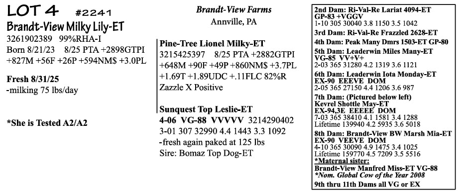 BRUBACKER'S September Monthly Production Sale