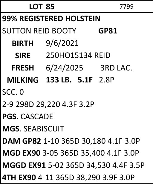 BRUBACKER'S September Monthly Production Sale