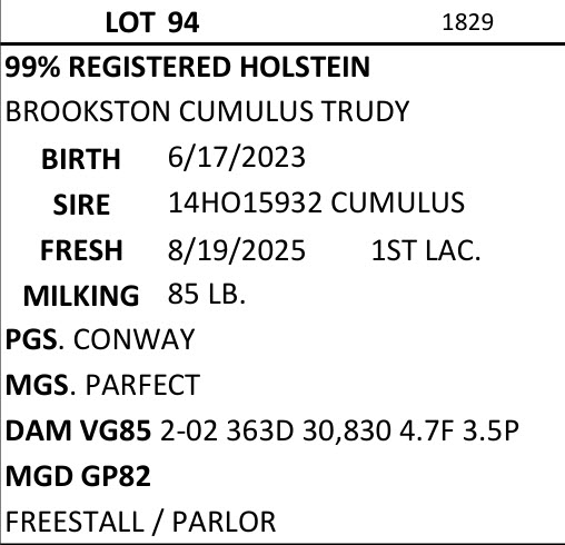 BRUBACKER'S September Monthly Production Sale