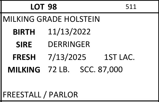 BRUBACKER'S September Monthly Production Sale