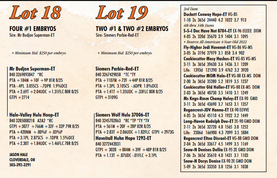 Buyer keeps all resulting embryos from these controlled IVF sessions. Buyer is responsible for all costs of the aspiration and mating sire decision.
