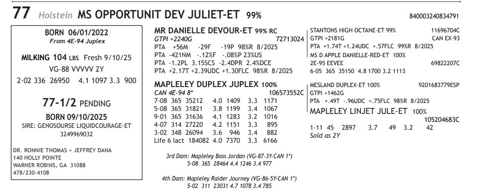 MILKING 104 LBS Fresh 9/10/25