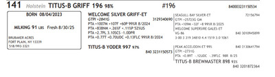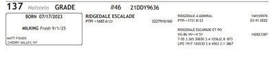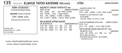 BORN 07/28/2023 From EX-94 Kaley Family MILKING Fresh 9/30/25 GTPI +1839G A1A2 Potential 5th Gen EX, VG