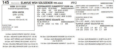 BORN 01/11/2025 From EX-93 Splindid Family OPEN HEIFER GTPI +2177G A2A2 Potential 15th Gen EX, VG