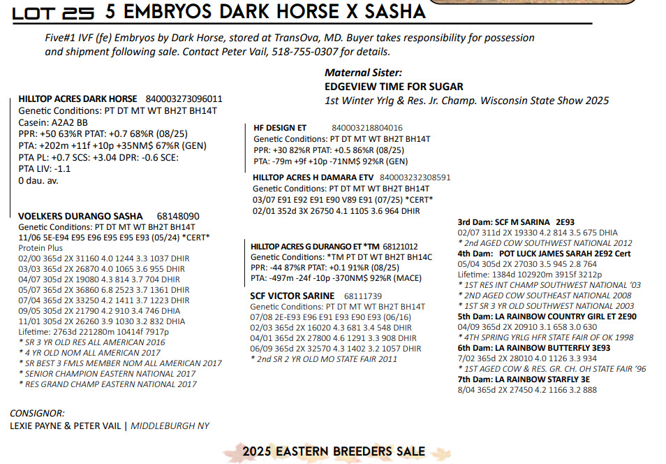 Five#1 IVF (fe) Embryos by Dark Horse, stored at TransOva, MD. Buyer takes responsibility for possession