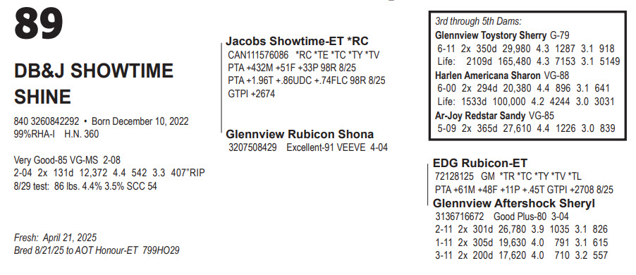 Bred 8/21/25 to AOT Honour-ET 799HO29