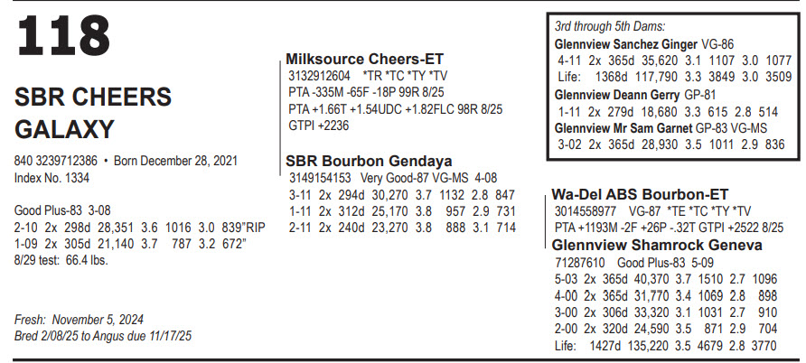Bred 2/08/25 to Angus due 11/17/25