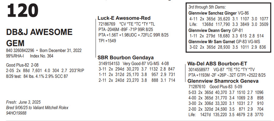 Bred 9/06/25 to Valiant Mitchell Rolex