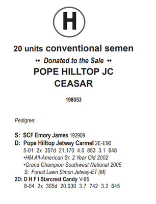 sexed semen HILLTOP ACRES TRICKSHOT-ETV