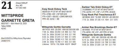 Bred 6/17/25 to Hilltop Acres Playmaker