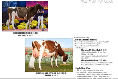 Nittany Lion Fall Classic 2025 800 E. Park Ave, University Park PA, 16802 Great offering of Multiple Breeds! Contact Agent: GW Sebright 717-817-1823 Catalog | Terms of Auction Download CATALOG Download LOT 8 INFO Download SALE ORDER Download UPDATES Catalog | Terms Download CATALOG Download LOT 8 INFO Download SALE ORDER Download UPDATES All Items (135) Cattle (109) Embryos (26) Categories All Items (135) Cattle (109) Embryos (26) Search Item #: Keyword: Search Catalog Item #: Keyword: 20 items per page 50 items per page 100 items per page Go to page #: 1 , 2 , 3 , 4 , 5 , 6 #1 – BRAXCO SD VALENTINO-ET BRAXCO SD VALENTINO-ET 840003257495586 99%RHA-I VG-87 VG-MS @ 2-01 Born: June 1, 2023 Herd No. 700 Fresh: June 3, 2025 Milking: 68# 4.1F 3.5P SCC 29,000 Due: May16, 2025 to MB-Luckylady Eye Candy-ET (Sexed Semen) 7HO16104 Location: 800 E. Park Ave, University Park PA, 16802 Contact Agent: GW Sebright 717-817-1823 More Info / Bid Now Track this Item Sold High Bid: $3,650.00 – #111 #1 – BRAXCO SD VALENTINO-ET Sold High Bid: $3,650 More Details More Info / Bid Track Item BRAXCO SD VALENTINO-ET 840003257495586 99%RHA-I VG-87 VG-MS @ 2-01 Born: June 1, 2023 Herd No. 700 Fresh: June 3, 2025 Milking: 68# 4.1F 3.5P SCC 29,000 Due: May16, 2025 to MB-Luckylady Eye Candy-ET (Sexed Semen) 7HO16104 Location: 800 E. Park Ave, University Park PA, 16802 Contact Agent: GW Sebright 717-817-1823 #1A – DROPBOX X CAUGHT SOME HEAT CHOICE CHOICE OF THREE FEMALES DUE MARCH 1 2026 Location: 800 E. Park Ave, University Park PA, 16802 Contact Agent: GW Sebright 717-817-1823 More Info / Bid Now Track this Item Sold High Bid: $4,500.00 – #110 #1A – DROPBOX X CAUGHT SOME HEAT CHOICE Sold High Bid: $4,500 More Details More Info / Bid Track Item CHOICE OF THREE FEMALES DUE MARCH 1 2026 Location: 800 E. Park Ave, University Park PA, 16802 Contact Agent: GW Sebright 717-817-1823 #1X – LOGIC, DROPBOX X CAPTAIN CHOICE FIRST CHOICE FEMALE Three Female Pregnancies Due: December 10, 2025 Two By: Drewholme Logic PP One By: Kings-Randsom Dropbox-ET Location: 800 E. Park Ave, University Park PA, 16802 Contact Agent: GW Sebright 717-817-1823 More Info / Bid Now Track this Item Sold High Bid: $3,300.00 – #1079 #1X – LOGIC, DROPBOX X CAPTAIN CHOICE Sold High Bid: $3,300 More Details More Info / Bid Track Item FIRST CHOICE FEMALE Three Female Pregnancies Due: December 10, 2025 Two By: Drewholme Logic PP One By: Kings-Randsom Dropbox-ET Location: 800 E. Park Ave, University Park PA, 16802 Contact Agent: GW Sebright 717-817-1823 #2 – MILLENNIAL C VELVET-RED 840003225068831 99%RHA-I Born: March 2, 2023 Herd No. 1016 2-04 2x 42d 4396 3.5 153 2.9 126 RIP Fresh: July 1, 2025 SCC 66,000 Location: 800 E. Park Ave, University Park PA, 16802 Contact Agent: GW Sebright 717-817-1823 More Info / Bid Now Track this Item Sold High Bid: $3,750.00 – #43 #2 – MILLENNIAL C VELVET-RED Sold High Bid: $3,750 More Details More Info / Bid Track Item 840003225068831 99%RHA-I Born: March 2, 2023 Herd No. 1016 2-04 2x 42d 4396 3.5 153 2.9 126 RIP Fresh: July 1, 2025 SCC 66,000 Location: 800 E. Park Ave, University Park PA, 16802 Contact Agent: GW Sebright 717-817-1823 #3 – JACOBS LAMBDA BINE-ET 120982958C Very Good-87 VVVVV @ 2-09 Born: May 17, 2022 1-10 2x 365d 31024 3.5 1112 3.1 967” Fresh: October 1, 2025 Location: 800 E. Park Ave, University Park PA, 16802 Contact Agent: GW Sebright 717-817-1823 More Info / Bid Now Track this Item Sold High Bid: $6,200.00 – #1048 #3 – JACOBS LAMBDA BINE-ET Sold High Bid: $6,200 More Details More Info / Bid Track Item 120982958C Very Good-87 VVVVV @ 2-09 Born: May 17, 2022 1-10 2x 365d 31024 3.5 1112 3.1 967” Fresh: October 1, 2025 Location: 800 E. Park Ave, University Park PA, 16802 Contact Agent: GW Sebright 717-817-1823 #4 – WSC WARRIOR RIZZLER-RED 840003138599690 99%RHA-I Born: June 2, 2024 Herd No. 14 Due: April 1, 2026 to Siemers Wolf Hulu 37006-ET (Sexed Semen) 3rd Summer Yrlg PNJS R&W 2025 5th Summer Yrlg/BBO All-American R&W Show 2025 Location: 800 E. Park Ave, University Park PA, 16802 Contact Agent: GW Sebright 717-817-1823 More Info / Bid Now Track this Item Sold High Bid: $5,000.00 – #1141 #4 – WSC WARRIOR RIZZLER-RED Sold High Bid: $5,000 More Details More Info / Bid Track Item 840003138599690 99%RHA-I Born: June 2, 2024 Herd No. 14 Due: April 1, 2026 to Siemers Wolf Hulu 37006-ET (Sexed Semen) 3rd Summer Yrlg PNJS R&W 2025 5th Summer Yrlg/BBO All-American R&W Show 2025 Location: 800 E. Park Ave, University Park PA, 16802 Contact Agent: GW Sebright 717-817-1823 #5 – BENRISE MASTER POPPY-TW 15040211C 99%RHA-I Born: October 1, 2024 Herd No. 841 2nd Fall Calf OH State Jr Show 2025 6th Fall Calf Mid-East Summer Nat’l 2025 Location: 800 E. Park Ave, University Park PA, 16802 Contact Agent: GW Sebright 717-817-1823 More Info / Bid Now Track this Item No Bids Starting at $1,500.00 Login to Bid #5 – BENRISE MASTER POPPY-TW Starting at $1,500.00 Login to Bid More Details More Info / Bid Track Item 15040211C 99%RHA-I Born: October 1, 2024 Herd No. 841 2nd Fall Calf OH State Jr Show 2025 6th Fall Calf Mid-East Summer Nat’l 2025 Location: 800 E. Park Ave, University Park PA, 16802 Contact Agent: GW Sebright 717-817-1823 #6 – PCH WARRIOR JUBILEE 840003207715423 *RC Born: March 5, 2025 Location: 800 E. Park Ave, University Park PA, 16802 Contact Agent: GW Sebright 717-817-1823 More Info / Bid Now Track this Item Sold High Bid: $3,500.00 – #52 #6 – PCH WARRIOR JUBILEE Sold High Bid: $3,500 More Details More Info / Bid Track Item 840003207715423 *RC Born: March 5, 2025 Location: 800 E. Park Ave, University Park PA, 16802 Contact Agent: GW Sebright 717-817-1823 #7 – ANDREWS ALPHA JUNEY 840003296331570 99%RHA-I Born: March 1, 2025 Herd No. 65 Location: 800 E. Park Ave, University Park PA, 16802 Contact Agent: GW Sebright 717-817-1823 More Info / Bid Now Track this Item Sold High Bid: $4,300.00 – #110 #7 – ANDREWS ALPHA JUNEY Sold High Bid: $4,300 More Details More Info 