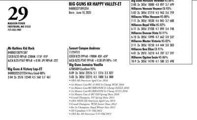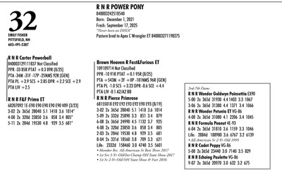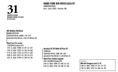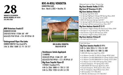 Nittany Lion Fall Classic 2025 800 E. Park Ave, University Park PA, 16802 Great offering of Multiple Breeds! Contact Agent: GW Sebright 717-817-1823 Catalog | Terms of Auction Download CATALOG Download LOT 8 INFO Download SALE ORDER Download UPDATES Catalog | Terms Download CATALOG Download LOT 8 INFO Download SALE ORDER Download UPDATES All Items (135) Cattle (109) Embryos (26) Categories All Items (135) Cattle (109) Embryos (26) Search Item #: Keyword: Search Catalog Item #: Keyword: 20 items per page 50 items per page 100 items per page Go to page #: 1 , 2 , 3 , 4 , 5 , 6 #17 – OAKFIELD ARCHITE HEIRESS-ET 840003278136697 99%RHA-I *TE *TC *TY *TV *TL Born: March 3, 2025 Herd No. 7594 55K GTPI + Location: 800 E. Park Ave, University Park PA, 16802 Contact Agent: GW Sebright 717-817-1823 More Info / Bid Now Track this Item Sold High Bid: $4,200.00 – #1124 #17 – OAKFIELD ARCHITE HEIRESS-ET Sold High Bid: $4,200 More Details More Info / Bid Track Item 840003278136697 99%RHA-I *TE *TC *TY *TV *TL Born: March 3, 2025 Herd No. 7594 55K GTPI + Location: 800 E. Park Ave, University Park PA, 16802 Contact Agent: GW Sebright 717-817-1823 #18 – J-FOLTS TURBO JET-RED-ET 840003213844380 Born: June 11, 2025 Location: 800 E. Park Ave, University Park PA, 16802 Contact Agent: GW Sebright 717-817-1823 More Info / Bid Now Track this Item Sold High Bid: $3,600.00 – #1124 #18 – J-FOLTS TURBO JET-RED-ET Sold High Bid: $3,600 More Details More Info / Bid Track Item 840003213844380 Born: June 11, 2025 Location: 800 E. Park Ave, University Park PA, 16802 Contact Agent: GW Sebright 717-817-1823 #19 – BLONDIN DIRECT ALYSON-TW-ET 840003296331576 99%RHA-I *TR *TC *TY *TL Born: March 9, 2025 Herd No. 71 43K GTPI +1983G A2/A2 Location: 800 E. Park Ave, University Park PA, 16802 Contact Agent: GW Sebright 717-817-1823 More Info / Bid Now Track this Item Sold High Bid: $4,100.00 – #1150 #19 – BLONDIN DIRECT ALYSON-TW-ET Sold High Bid: $4,100 More Details More Info / Bid Track Item 840003296331576 99%RHA-I *TR *TC *TY *TL Born: March 9, 2025 Herd No. 71 43K GTPI +1983G A2/A2 Location: 800 E. Park Ave, University Park PA, 16802 Contact Agent: GW Sebright 717-817-1823 #20 – MDHILL-B-T-U INDIA-RED-ET 840003221308924 99%RHA-I Born: March 11, 2024 Herd No. 15 Due: March 2, 2026 to Blondin Alpha-ET (Sexed Semen) 799HO052 Location: 800 E. Park Ave, University Park PA, 16802 Contact Agent: GW Sebright 717-817-1823 More Info / Bid Now Track this Item Sold High Bid: $4,100.00 – #9 #20 – MDHILL-B-T-U INDIA-RED-ET Sold High Bid: $4,100 More Details More Info / Bid Track Item 840003221308924 99%RHA-I Born: March 11, 2024 Herd No. 15 Due: March 2, 2026 to Blondin Alpha-ET (Sexed Semen) 799HO052 Location: 800 E. Park Ave, University Park PA, 16802 Contact Agent: GW Sebright 717-817-1823 #21 – PCH ALPHA INDIGO 840003207715418 *RC Born: March 1, 2025 Location: 800 E. Park Ave, University Park PA, 16802 Contact Agent: GW Sebright 717-817-1823 More Info / Bid Now Track this Item Sold High Bid: $3,950.00 – #1208 #21 – PCH ALPHA INDIGO Sold High Bid: $3,950 More Details More Info / Bid Track Item 840003207715418 *RC Born: March 1, 2025 Location: 800 E. Park Ave, University Park PA, 16802 Contact Agent: GW Sebright 717-817-1823 #22 – CURR-VALE-AE BE BREEZY-ET 840003288579052 99%RHA-I *TR *TC *TL Born: September 3, 2024 Herd No. 14132 55K GTPI +2393G +2.57T +1.18UDC +1.01FLC A2/A2 AB Location: 800 E. Park Ave, University Park PA, 16802 Contact Agent: GW Sebright 717-817-1823 More Info / Bid Now Track this Item Sold High Bid: $5,200.00 – #36 #22 – CURR-VALE-AE BE BREEZY-ET Sold High Bid: $5,200 More Details More Info / Bid Track Item 840003288579052 99%RHA-I *TR *TC *TL Born: September 3, 2024 Herd No. 14132 55K GTPI +2393G +2.57T +1.18UDC +1.01FLC A2/A2 AB Location: 800 E. Park Ave, University Park PA, 16802 Contact Agent: GW Sebright 717-817-1823 #23 – VELVET-VIEW BAILEY-ET 840003277631615 99%RHA-I *TR *TC *TL Born: June 10, 2023 Herd No. 482 2-01 2x 56d 4896 3.5 171 3.0 148 RIP Fresh: July 27, 2025 Milking 103#/Day 2.9F 2.8P SCC 25,000 Bred: October 13, 2025 to Kings-Ransom Dropbox-ET Location: 800 E. Park Ave, University Park PA, 16802 Contact Agent: GW Sebright 717-817-1823 More Info / Bid Now Track this Item Sold High Bid: $3,600.00 – #29 #23 – VELVET-VIEW BAILEY-ET Sold High Bid: $3,600 More Details More Info / Bid Track Item 840003277631615 99%RHA-I *TR *TC *TL Born: June 10, 2023 Herd No. 482 2-01 2x 56d 4896 3.5 171 3.0 148 RIP Fresh: July 27, 2025 Milking 103#/Day 2.9F 2.8P SCC 25,000 Bred: October 13, 2025 to Kings-Ransom Dropbox-ET Location: 800 E. Park Ave, University Park PA, 16802 Contact Agent: GW Sebright 717-817-1823 #24 – MILLION-HEIR A WORTHALOT-ET 145548351 99%RHA-I VG-85 VG-MS @ 2-06 *RC Born: March 2, 2023 Fresh: July 19, 2025 Milking 53# 3.9f 3.1p SCC 66,000 Location: 800 E. Park Ave, University Park PA, 16802 Contact Agent: GW Sebright 717-817-1823 More Info / Bid Now Track this Item Sold High Bid: $3,550.00 – #1151 #24 – MILLION-HEIR A WORTHALOT-ET Sold High Bid: $3,550 More Details More Info / Bid Track Item 145548351 99%RHA-I VG-85 VG-MS @ 2-06 *RC Born: March 2, 2023 Fresh: July 19, 2025 Milking 53# 3.9f 3.1p SCC 66,000 Location: 800 E. Park Ave, University Park PA, 16802 Contact Agent: GW Sebright 717-817-1823 #25 – HOLLENDALE PACE 5001-ET 840003299817717 99%RHA-I *TR *TC *TV *TL Born: September 27, 2024 Herd No. 5001 GTPI +3185 +279M NM 473 +70F +34P 79R PTA +168FE +0.5 FI -0.1DPR 3.11SCS +1.4SCE +1.8DCE PTA +2.49T +1.74UDC +1.63FLC 78R A2/A2 BB Location: 800 E. Park Ave, University Park PA, 16802 Contact Agent: GW Sebright 717-817-1823 More Info / Bid Now Track this Item Sold High Bid: $4,400.00 – #27 #25 – HOLLENDALE PACE 5001-ET Sold High Bid: $4,400 More Details More Info / Bid Track Item 840003299817717 99%RHA-I *TR *TC *TV *TL Born: September 27, 2024 Herd No. 5001 GTPI +3185 +279M NM 473 +70F +34P 79R PTA +168FE +0.5 FI -0.1DPR 3.11SCS +1.4SCE +1.8DCE